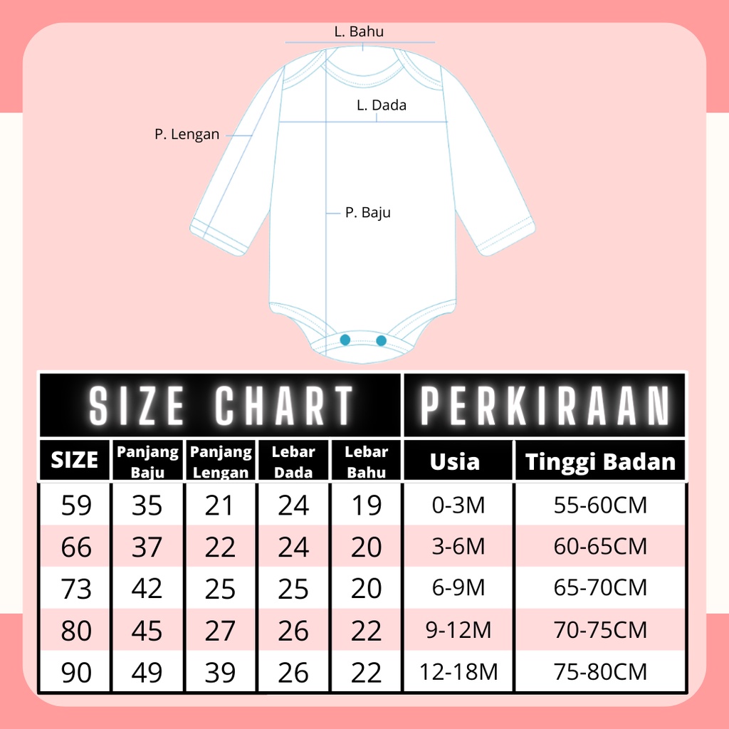 Produk ini memiliki 5 Variasi Ukuran yaitu : 59 (0-3M),66 (3-6M),73 (6-9M),80 (9-12M),90 (12-18M),