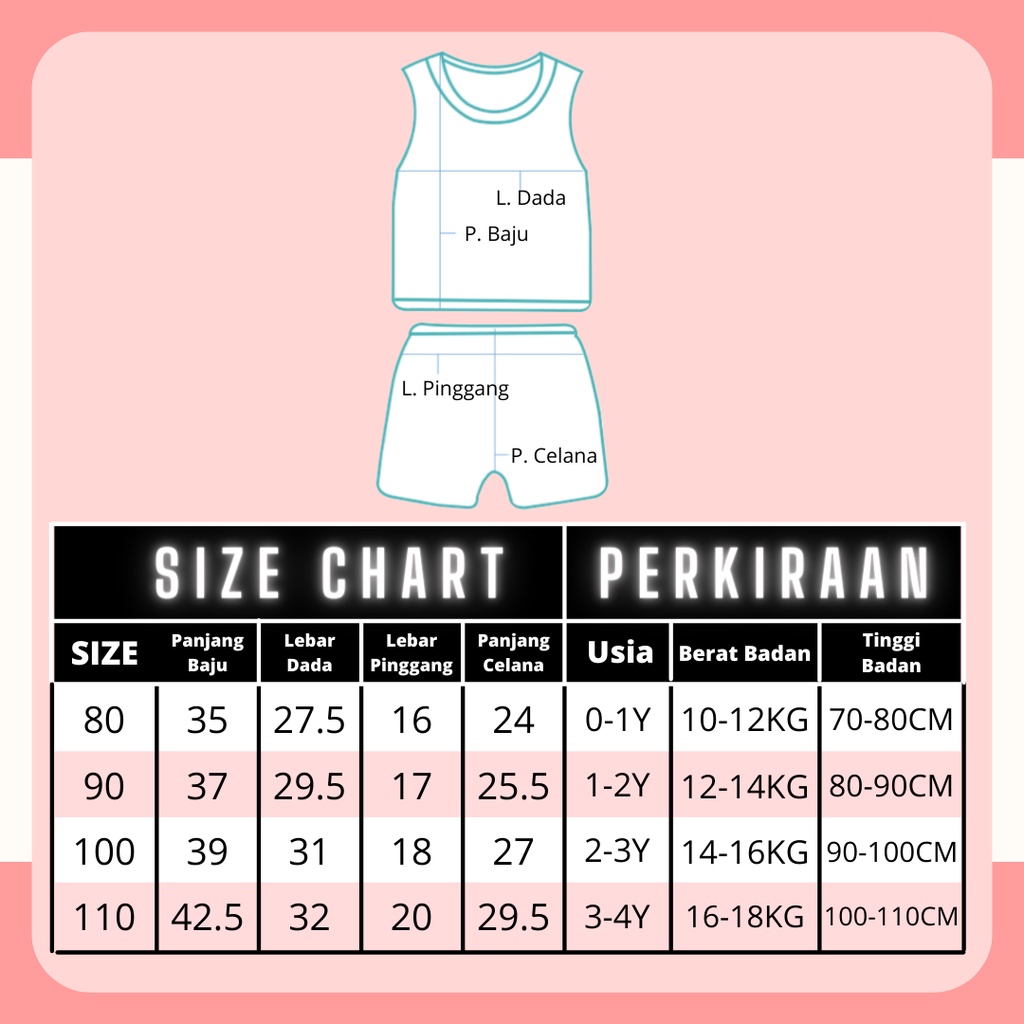 Produk ini memiliki 4 Variasi Ukuran yaitu : 80 (0-6M),90 (6-12M),100 (1-2Y),110 (2-3Y),