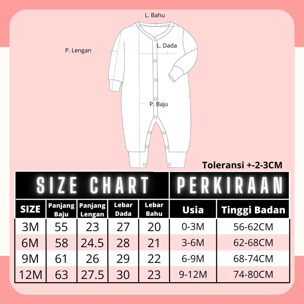 Produk ini memiliki 4 Variasi Ukuran yaitu : 3M (0-3M),6M (3-6M),9M (6-9M),12M (9-12M),